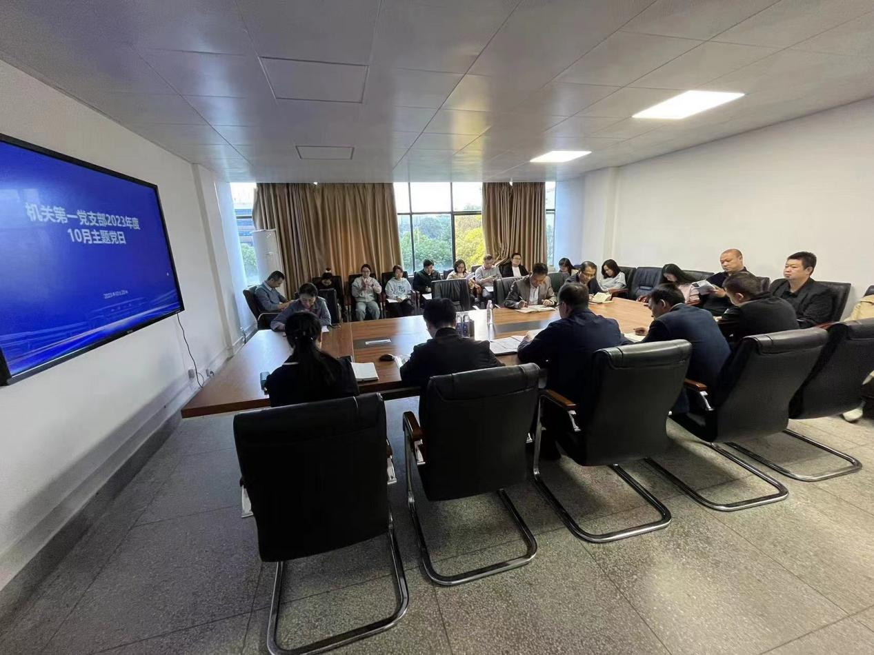 2023年10月20日,机关第一党支部全体党员在第一办公楼303会议室开展主题党日活动,活动由党支部副书记阳志成主持。