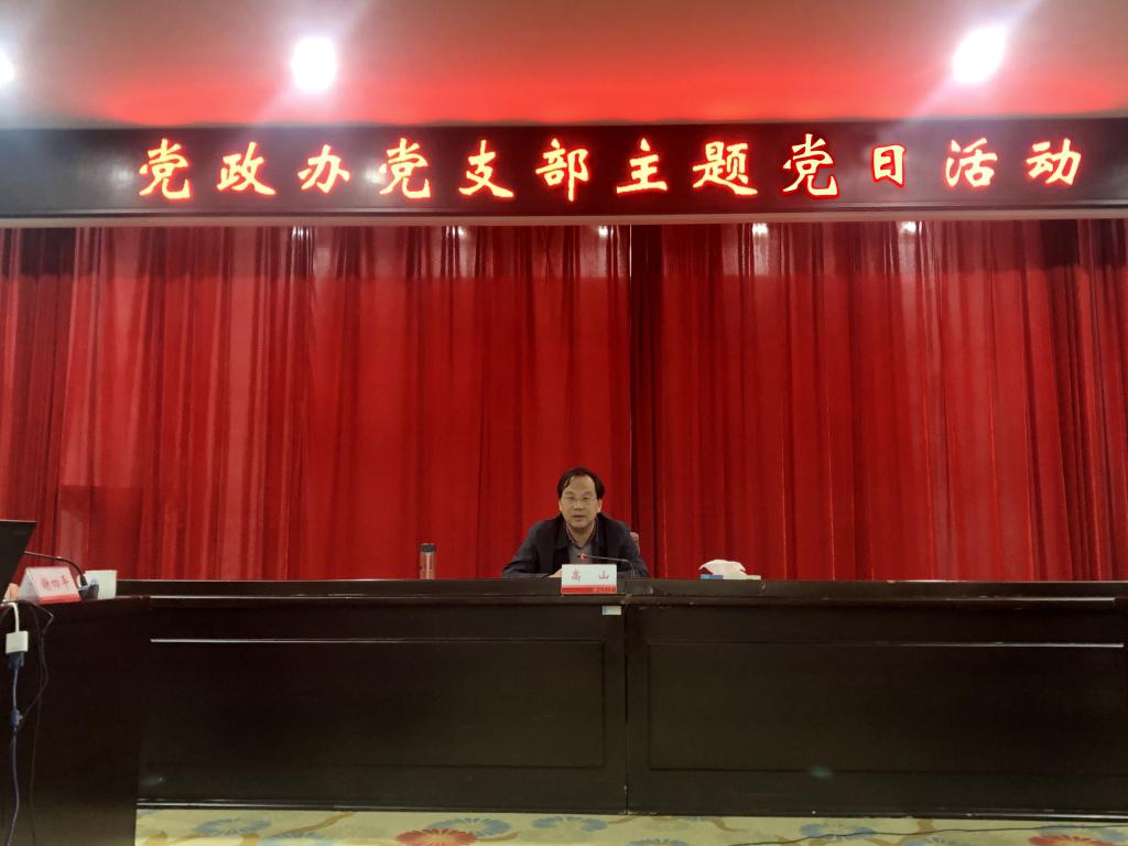 为深入贯彻落实学校党委确定2020年为执行力提升年的各项要求,4月7日19:00-21:30,党政办党支部在西苑一办二楼视频会议室举行支部主题党日等活动。校党委书记高山作为支部一员全过程参与活动,过双重组织生活。党支部书记谢四平主持活动,校纪委副书记、监察处处长曾建新作为点评嘉宾全程参加活动。