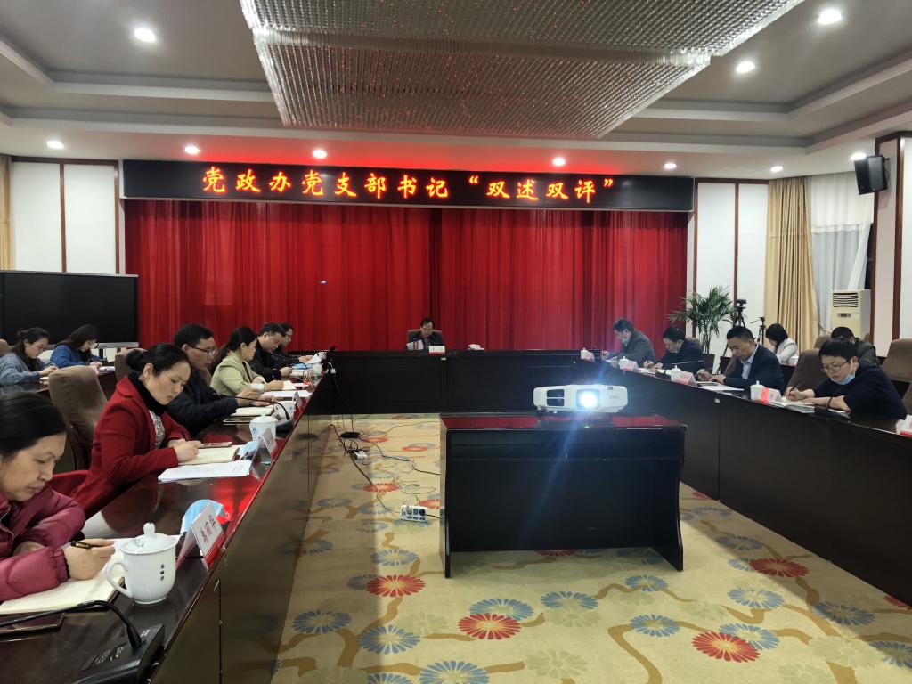 首先开展支部书记“双述双评”活动,2019年度党支部书记李飞逸就履职情况进行了详细述职。校纪委副书记、监察处长曾建新进行点评。曾建新同志对党政办党支部工作给予了充分肯定,并从党政办工作特点、性质和功能出发,就如何进一步补齐短板、发挥党员先锋模范作用、加强党政办党支部建设等方面给予了建议、提出了具体要求。述职后每位党员认真填写了“述职测评表”,并由专人进行汇总。