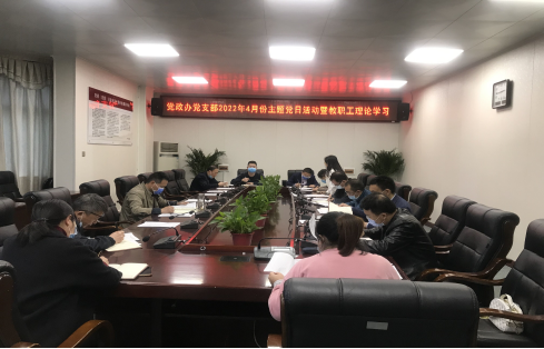 4月15日下午,党政办党支部在217会议室开展了4月份主题党日活动暨第1次教职工理论学习,会议由支部书记陈柒叁主持,全体党员与会。