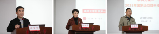 会上,夏昆介绍了2024年度国家级科研项目申报与立项情况,并对2025年度国家级科研项目申报进行了安排部署。公共卫生学院院长杨飞、附属第一医院执行院长唐惠芳、计算机学院院长万亚平汇报了2025年度国家级科研项目申报准备工作情况。核科学技术学院罗文教授、附属第一医院陈志伟教授、药学院师资博士后陈哲、经济管理与法学院封艳红博士依次作经验交流发言。