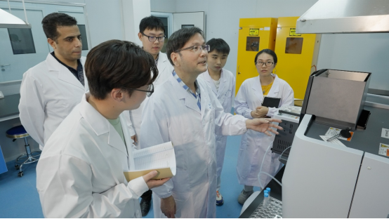 韦悦周教授(左二)在带领团队成员做实验