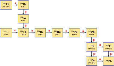 图1钍-232和铀-232的衰变链及各核素半衰期