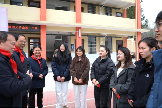 高山、张灼华一行首先来到隆回县三阁司镇天子山村五一小学,代表学校向五一小学捐赠了教学设备及学习用品,并看望慰问了在校支教的研究生支教团队成员,详细了解了队员们教学工作及生活保障情况。高山、张灼华充分肯定了支教团队的无私奉献精神,感谢他们为乡村教育注入新活力,为城乡教育交流架起新桥梁,鼓励他们用知识和爱心点亮孩子们的梦想,助力孩子们成长。