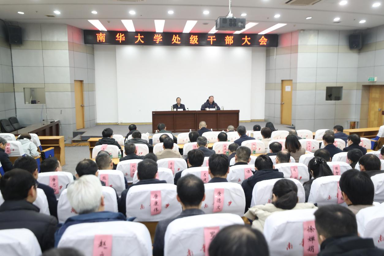 张灼华指出,2025年是“十四五”规划的收官之年,既要更高质量的完成好全年各项工作,也要为谋划“十五五”事业发展奠定基础。他从八个方面对2025年的学校相关工作进行了安排部署:一是切实做好开学各项工作,确保开学平稳有序;二是坚定不移推进人才强校战略,进一步加强高层次人才引育、优秀博士引进、师资博士培养工作,打造高素质专业化教师队伍;三是深化教育教学改革,加强专业内涵建设,推进课程教学改革,加快教育教学数字化转型,做好教学成果奖培育工作;四是加速推进学科优化布局和内涵建设,重点加强“核科学与技术”“基础医学”“安全科学与工程”等优势学科建设,加速未来两轮博士点培育效能;五是提升科技创新能力,推动国家级科研项目立项、进校科研经费总额、科技成果转化经费再上新台阶;六是深化医教研协同改革,完善医学人才培养体系,提升医院医疗服务能力;七是提升教育开放水平,加大教师国境外进修力度,吸引海外高端专家来校开展科研合作;八是提升管理服务综合效能,持续推进依法治校,深化教育评价改革,完善学校绩效工资分配,做好学校超长期国债设备更新项目、大型仪器设备开放共享、实验室安全等工作,全面落实零基预算改革,全力推进各类校园建设项目,不断强化机关干部作风建设。