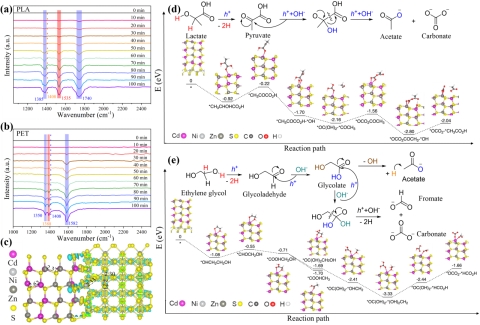 图2 光重整过程中分子水平的反应机制和降解产物的反应途径以及能量分析