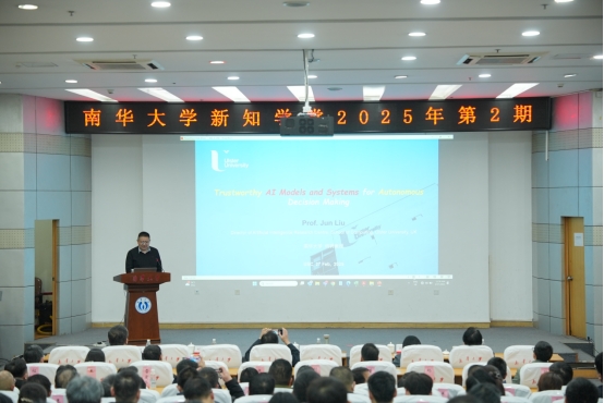 2月27日晚,best365英国在线体育新知学堂2025年第2期在红湘校区图书馆一楼新知学堂如期举行。英国北爱尔兰奥斯特大学计算学院教授、计算机学院人工智能研究中心主任刘军,以“自主决策的可信人工智能模型和系统”为题作学术报告。校党委书记高山、全体在校领导、党委委员出席。校党委委员、副校长夏昆主持报告会。