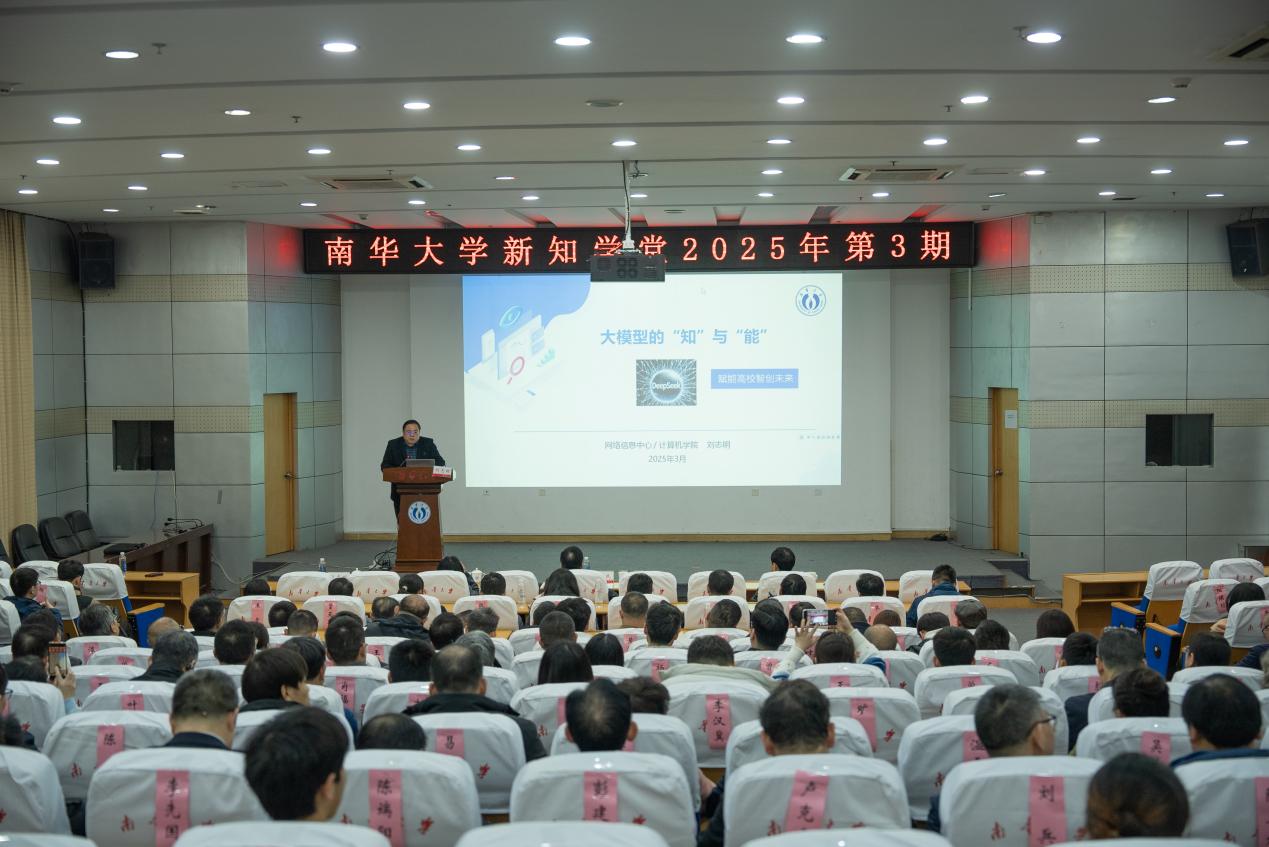 3月12日晚,best365英国在线体育新知学堂2025年第3期在红湘校区图书馆一楼新知学堂举行。best365英国在线体育网络信息中心主任刘志明教授以“大模型的‘知’与‘能’”为题,为在场干部作专题报告。校党委委员、副校长陈国民主持报告会。全体在校校领导、党委委员出席。