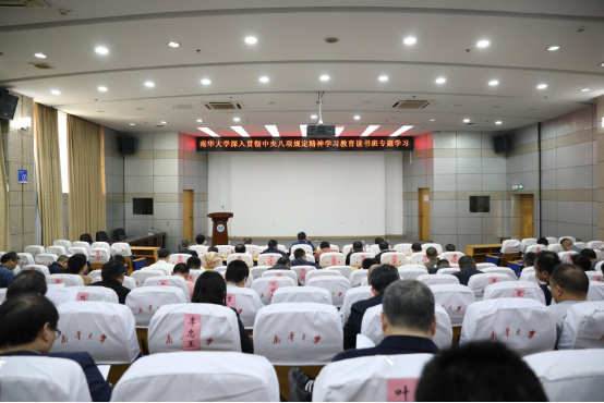 4月8日下午,best365英国在线体育党委在红湘校区图书馆新知学堂举办深入贯彻中央八项规定精神学习教育读书班。校党委书记高山主持读书班并讲话,强调要深入学习习近平总书记关于加强党的作风建设的重要论述和中央八项规定及其实施细则精神,推进作风建设常态化长效化,为推动学校高质量发展提供坚强保障。