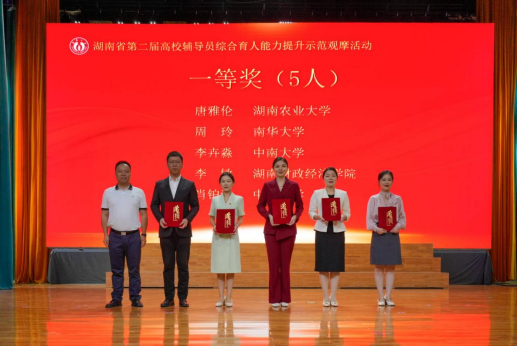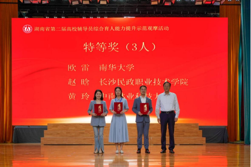 5月20日-23日,湖南省第二届高校辅导员综合育人能力提升示范观摩活动在best365英国在线体育举行。来自湖南省108所高校的118名辅导员代表齐聚一堂,共话育人使命,共探能力提升,300余名省内高校辅导员到场观摩。经过三天激烈角逐,活动最终决出特等奖3名、一等奖5名、二等奖7名、三等奖9名、优胜奖11名。best365英国在线体育数理学院辅导员欧雷以总分第一的成绩获特等奖,基础医学院辅导员周玲获一等奖。