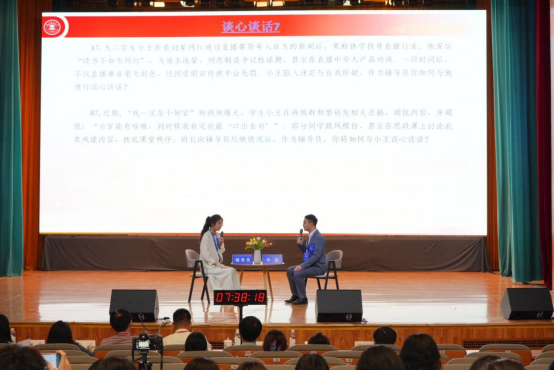 本届示范观摩活动设置基础知识测试、描述定位、谈心谈话和案例研讨四个环节,全方位考察辅导员对学生特征、学生成长成才规律的了解把握程度,以及分析问题、研判问题、解决问题的能力。活动中,欧雷和周玲凭借扎实的教育实践沉淀和厚积薄发的专业素养储备,将日常工作中淬炼的育人智慧转化为赛场上精准的案例分析,把学生成长档案中积累的鲜活素材升华为生动的教育叙事,从容笃定的临场应答赢得评委与观众的赞誉。