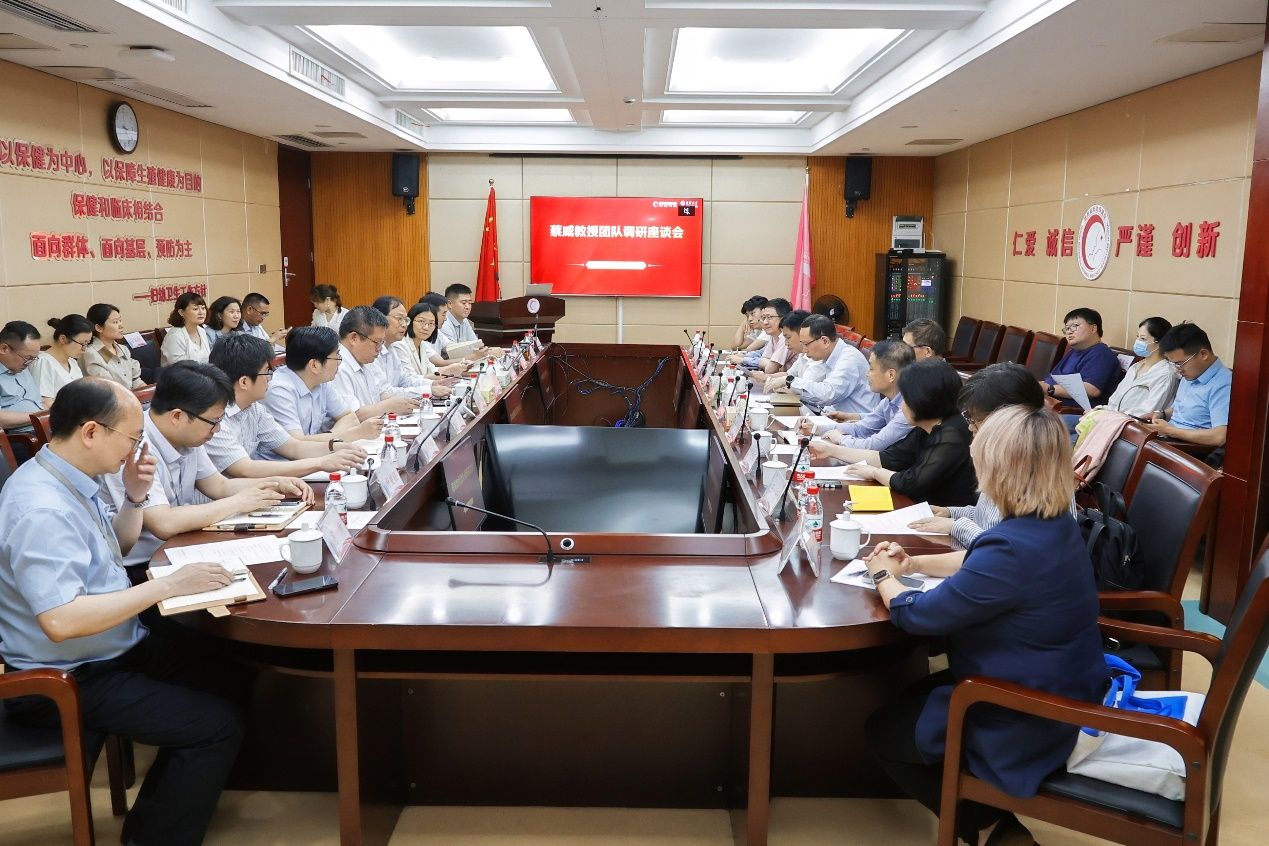 5月27日,上海市儿科医学研究所所长蔡威教授一行来best365英国在线体育附属妇幼保健院调研交流。省发展和改革委员会党组成员、副主任蒋俊,省卫生工会主任张敏,世界顶尖科学家协会副秘书长裘正义参加调研交流。best365英国在线体育党委书记高山主持座谈会,党委委员、副校长夏昆参加。