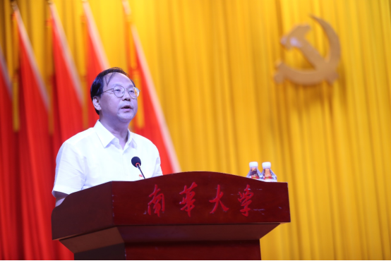 附属南华医院党委书记周玉生、核科学技术学院学生第二党支部书记周华国、电气工程学院教授陈文光、基础医学院博士研究生彭艳作为获奖代表发言。他们表示,将持续深入学习贯彻习近平新时代中国特色社会主义思想,坚定服务意识、践行实干理念,充分发挥基层党组织战斗堡垒作用和党员先锋模范作用,为学校“双一流”建设贡献力量。