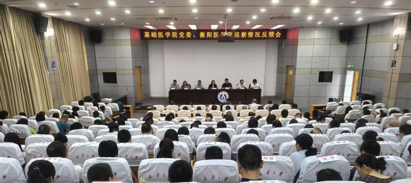 基础医学院党委书记兼衡阳医学院党委书记曾国在会上作了表态发言。学校党委组织部、驻校纪检监察组、党委巡察办负责人和第四轮巡察第二巡察组全体成员,基础医学院、衡阳医学院全体教职工及学生代表参加了巡察反馈会。