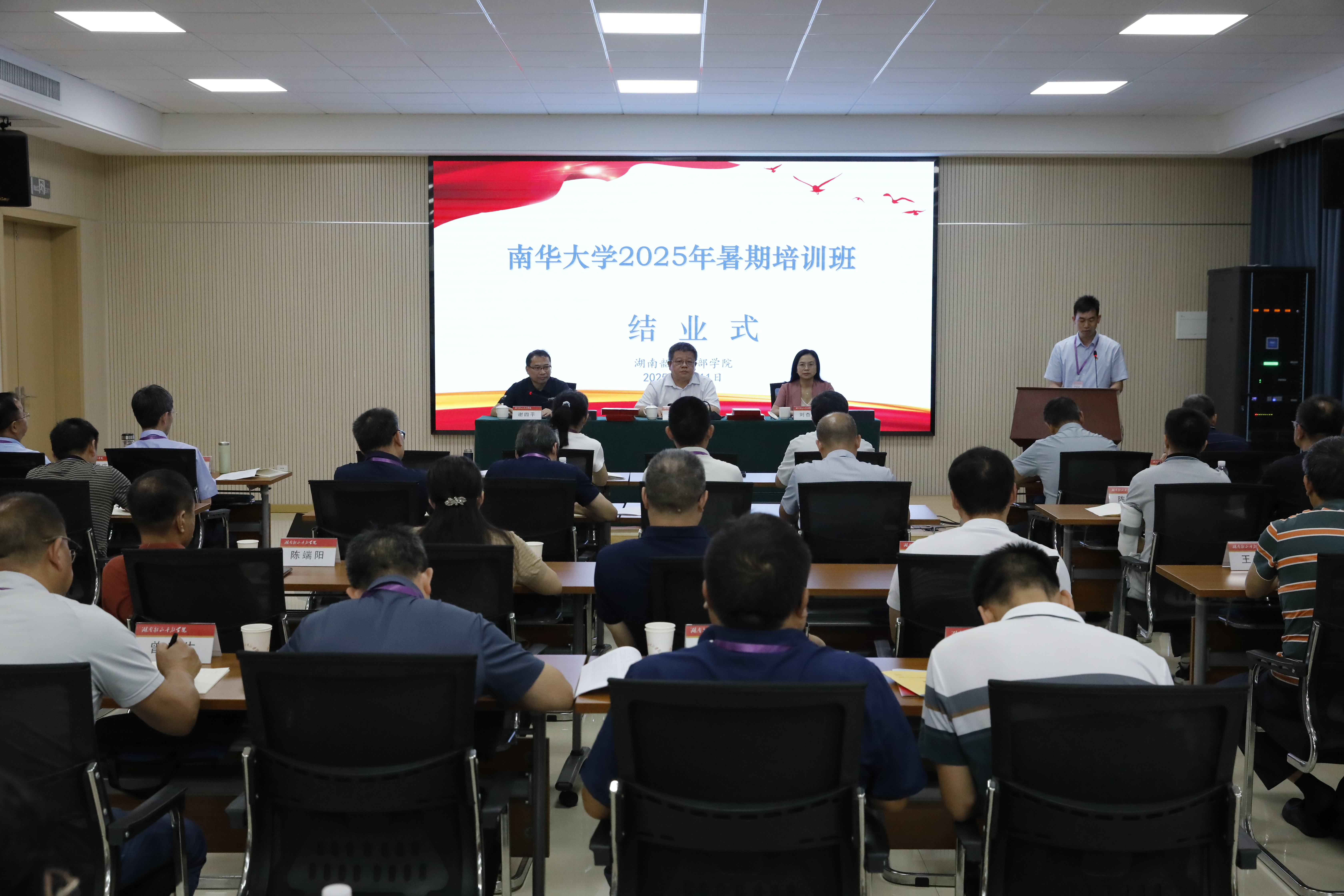 7月11日上午,best365英国在线体育2025年暑期培训班结业式在韶山干部培训学院举行。校党委委员、纪委书记,驻校纪检监察组组长刘杏花出席,党委委员、副校长夏昆出席并讲话,校党委组织部常务副部长谢四平主持结业式。