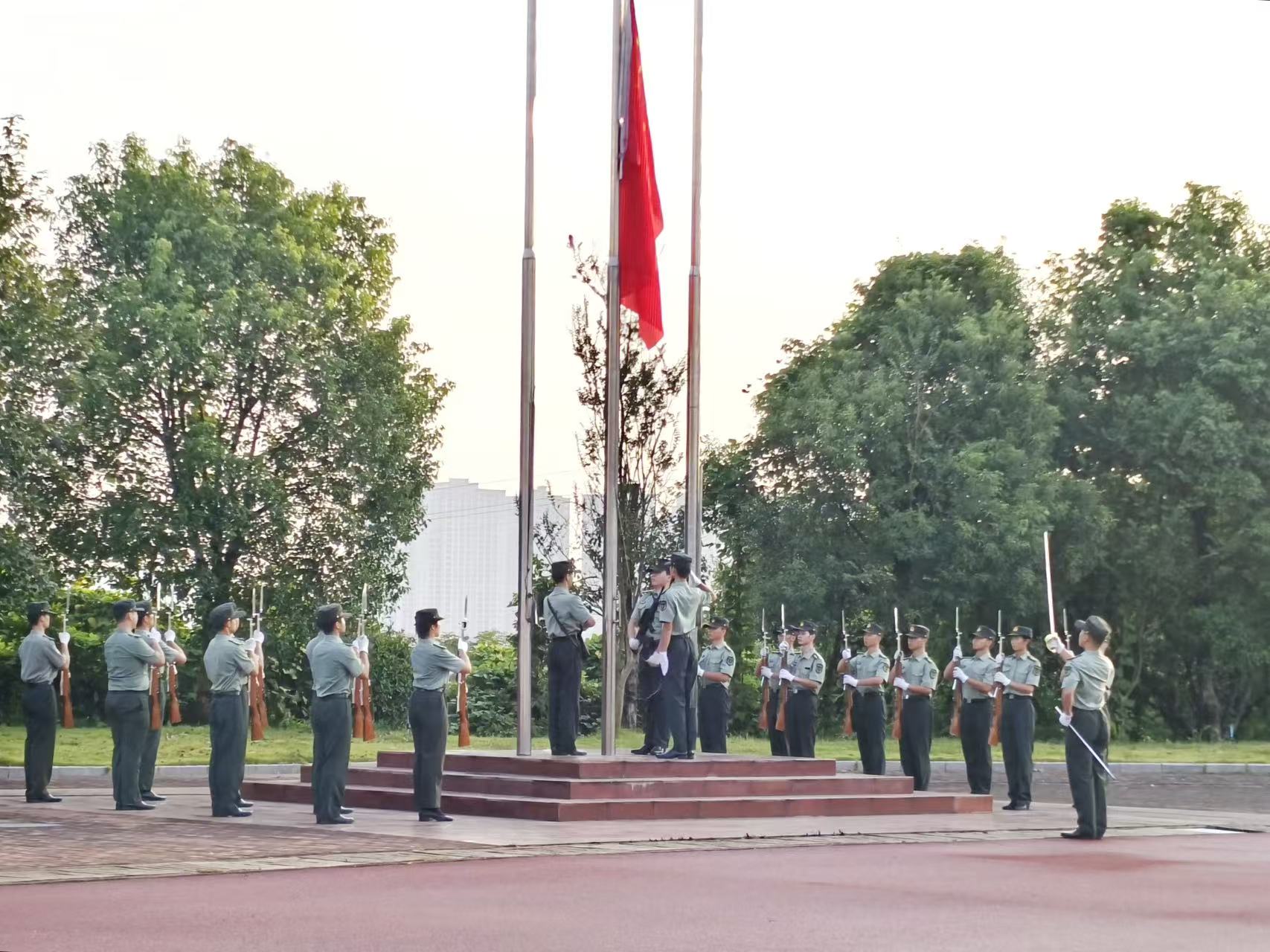 早上7时,在3000余名师生的注视下,英姿飒爽的国旗护卫队迈着铿锵有力的步伐,护卫着鲜艳的五星红旗庄严入场。当雄壮激昂的《义勇军进行曲》奏响,五星红旗迎着晨光缓缓升起。全场师生庄严肃立向国旗行注目礼,以昂扬的精神面貌,开启新一段逐梦旅程。