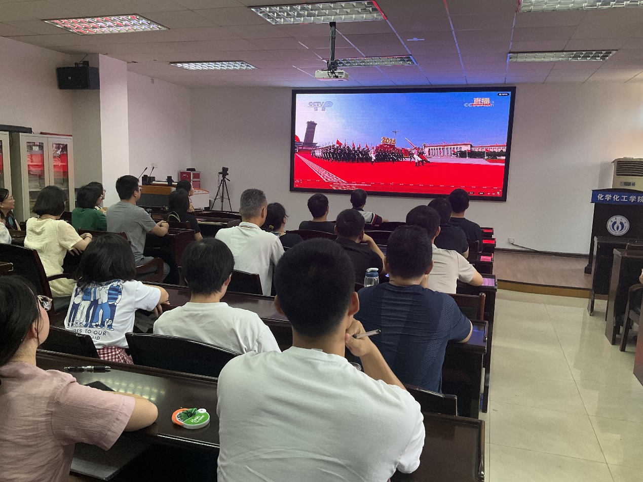 各二级单位纷纷开放会议室、活动中心、学术报告厅等场所,让师生相聚屏幕前,共同观看大会直播,认真学习习近平总书记重要讲话精神,围绕大会精神与阅兵盛况畅谈感悟,进一步激发师生爱国情感、凝聚奋进力量。
