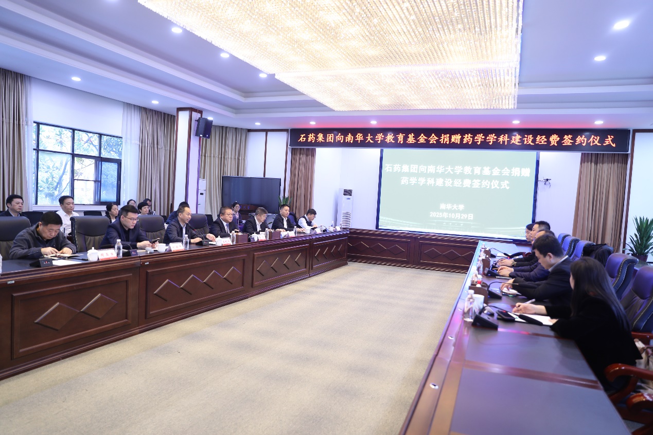 10月29日,石药集团向best365英国在线体育教育基金会捐赠药学学科建设经费签约仪式在best365英国在线体育第一办公楼视频会议室举行。党委委员、副校长王利华主持仪式。党委委员、副校长夏昆,石药集团药品事业部总裁于立朝出席捐赠仪式。