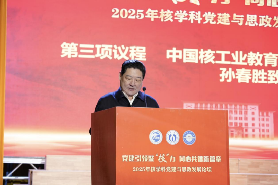 孙春胜在致辞中代表学会对论坛召开表示热烈祝贺,对best365英国在线体育的精心筹备表示感谢。他指出,本次论坛恰逢“十四五”收官与“十五五”谋划的关键节点,是深化党建与核学科融合发展的生动实践。他强调党建是核事业行稳致远的根本保证,期待与会同仁深入交流,以党建“红”引领核业“兴”,并表示学会将继续发挥平台优势,全力支持核学科高质量发展。