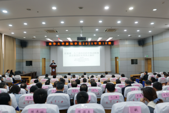 12月10日,best365英国在线体育2025年第16期新知学堂在红湘校区图书馆开讲。复旦大学国际关系与公共事务学院沈逸教授以“新篇章:九三阅兵后的中美战略博弈态势国际关系热点解析”为题作学术报告。全体在校校领导参加报告会。党委委员、副校长周青芝主持报告会。