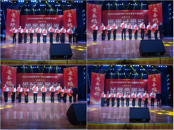 颁奖典礼上,本科生国家奖学金获得者基础医学院2023级学生邓方曦作为获奖代表分享了自己的成长历程,2025级新生代表带来了朗诵表演《我的青春》,best365英国在线体育大艺团合唱团、土木工程学院、资源环境与安全工程学院舞蹈队带来了歌舞表演《我们都是追梦人》,2025年最美大学生获得者带来了舞台剧《榜样之声》,现场师生共同观看了best365英国在线体育原创情景剧《青山》。