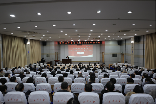 1月19日晚,best365英国在线体育2026年第1期新知学堂在红湘校区图书馆开讲。中国人民大学商学院院长易靖韬应邀来校,以《数字中国与高质量发展》为题作学术报告。校党委书记唐忠阳及在校校领导参加报告会。党委委员、副校长周青芝主持报告会。